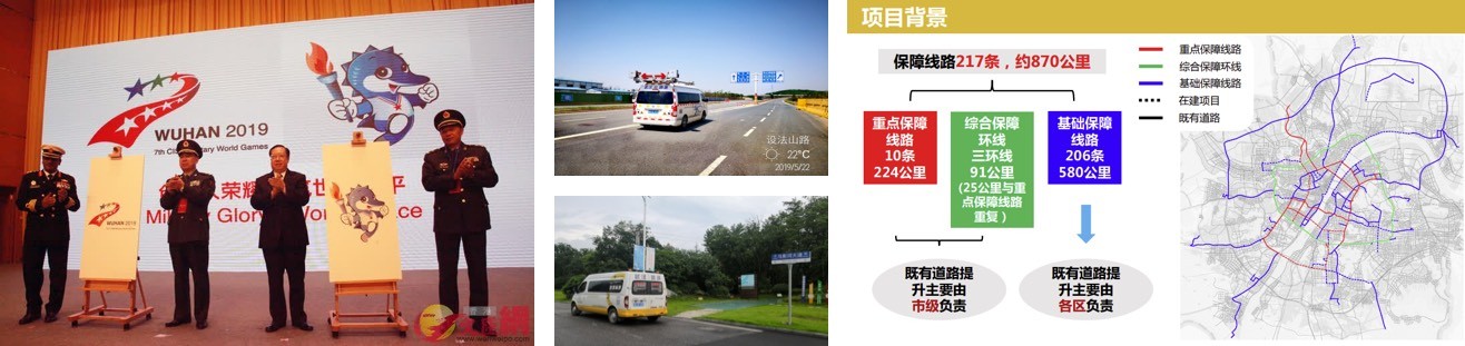 第七屆世界軍人運動會于2019年在武漢舉行,城建委負(fù)責(zé)武漢軍運會保障線路路面整治相關(guān)導(dǎo)則和方案編制工作。路源檢測公司承擔(dān)10條重點保障線路、三環(huán)線綜合保障線路、基礎(chǔ)保障線路路面檢測及附屬設(shè)施調(diào)查服務(wù),合計單車道里程超過2000公里。