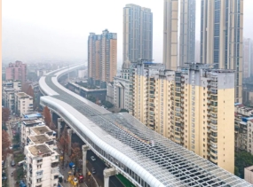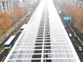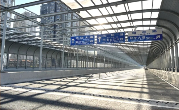 ? ? 項目設(shè)計團隊始終秉持 “輕量化、智能化、綠色化” 理念,多項技術(shù)應(yīng)用填補區(qū)域空白,樹立行業(yè)新標(biāo)桿。在鋪裝材料與工藝上,主線高架鋼箱梁橋面采用澆注式瀝青鋪裝,相比傳統(tǒng)方案減重16%,既降低橋梁結(jié)構(gòu)負(fù)荷、提升安全性,又縮短施工周期;鋼箱梁采用U肋全熔透智能焊接,大幅提高結(jié)構(gòu)疲勞壽命,積極推進(jìn)鋼箱梁U肋焊接工藝的發(fā)展。尤為引人注目的是,本項目集中展現(xiàn)了三大創(chuàng)新亮點:它擁有全國最長的連續(xù)全封閉聲屏障,是湖北省首例“光伏+市政”的融合實踐,更在武漢率先實現(xiàn)了聲屏障光伏發(fā)電的應(yīng)用,為綠色市政建設(shè)樹立了新的樣板。