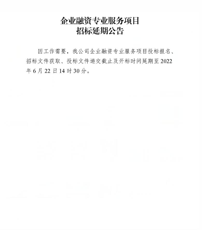 企業(yè)融資專業(yè)服務(wù)項目招標延期公告