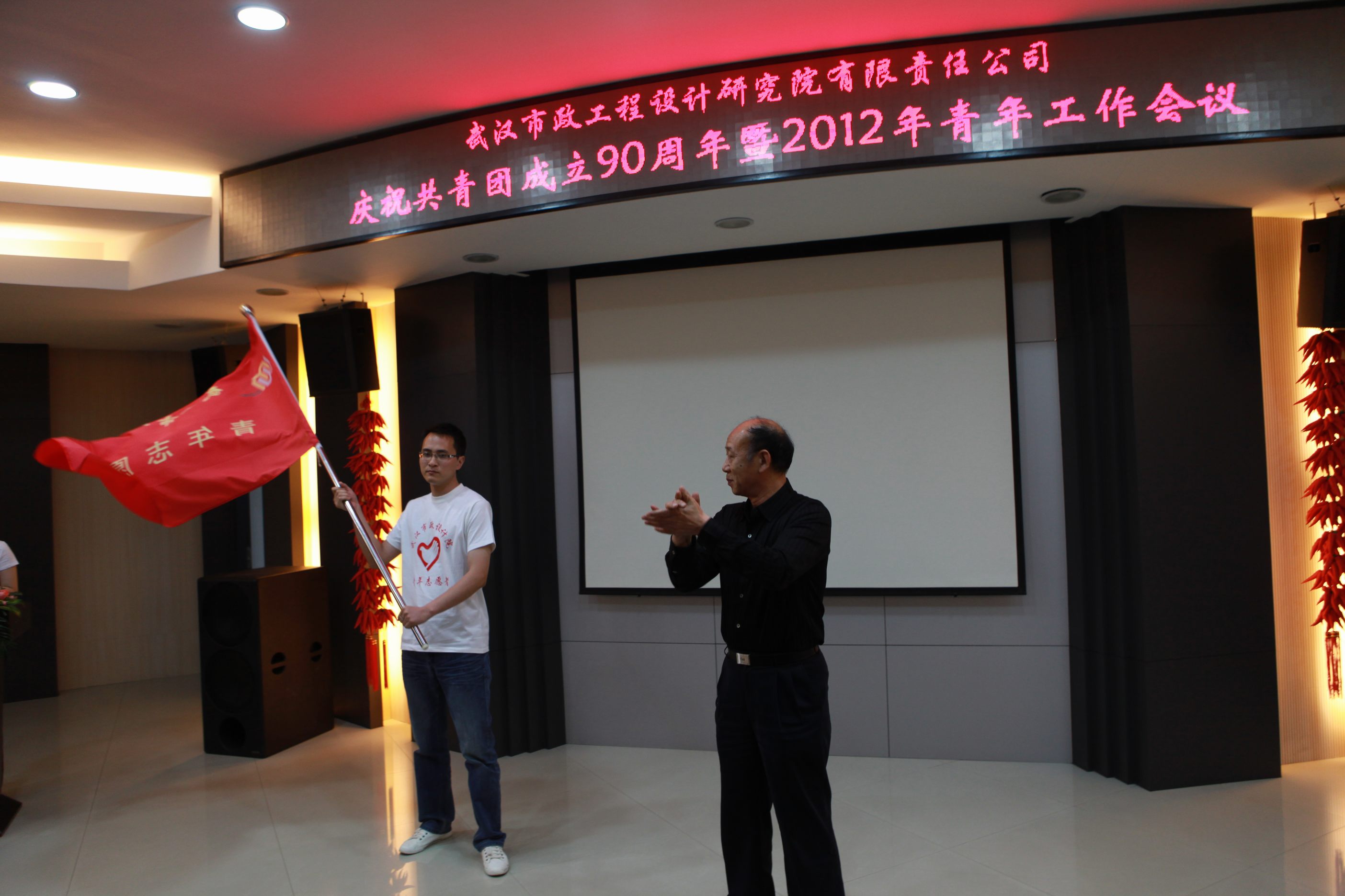 ??? 4月27日下午,公司在二樓會(huì)議室召開慶祝中國(guó)共青團(tuán)成立90周年暨2012年青年工作會(huì)議。市城建委黨組副書記、副主任熊明亮,共青團(tuán)武漢市委副書記魏靜應(yīng)邀出席,公司領(lǐng)導(dǎo)參加了本次會(huì)議。