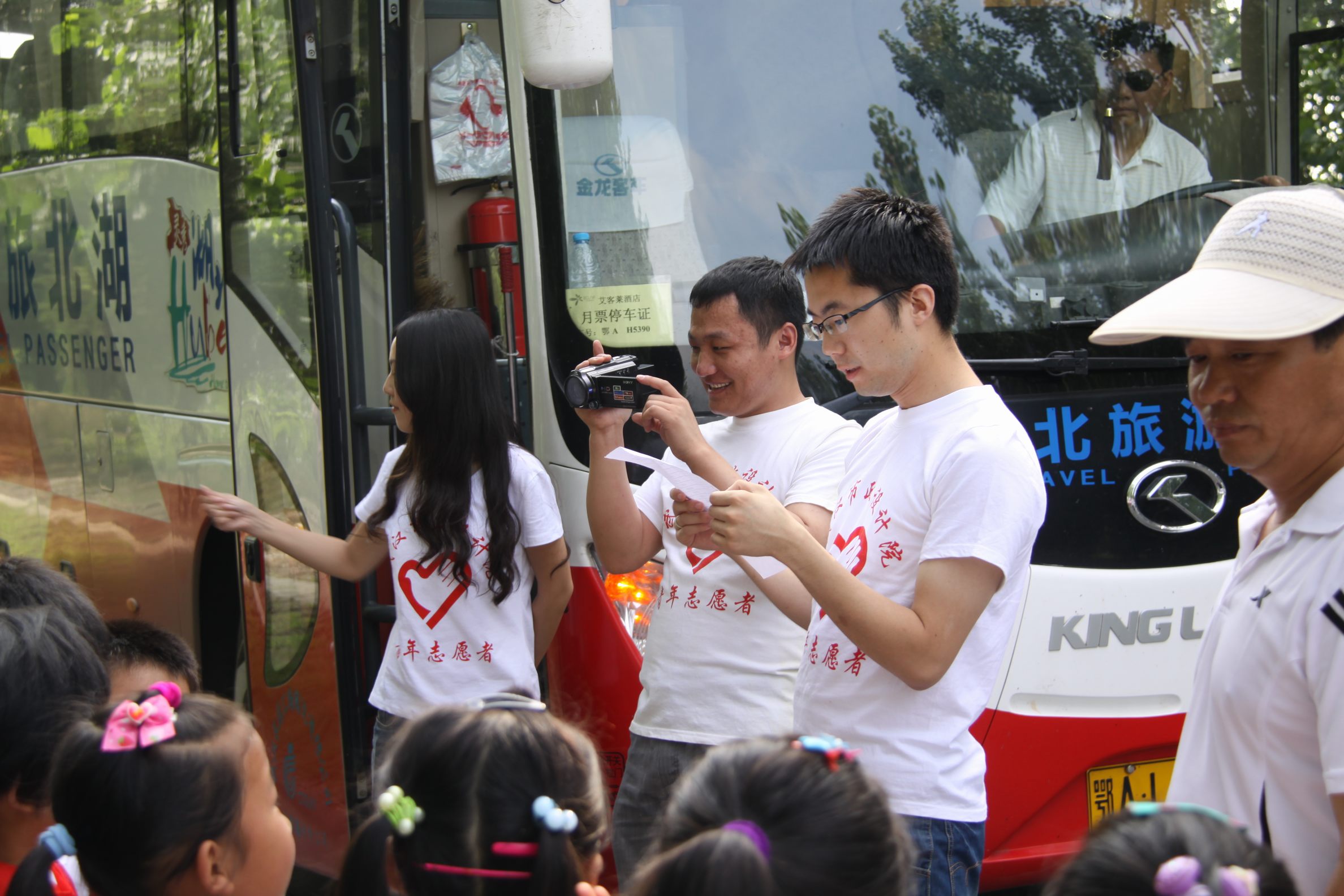 ??? 早上六點(diǎn)三十分,7名志愿者代表從公司出發(fā),赴李集小學(xué)迎接參加活動(dòng)的學(xué)生及老師,受到了學(xué)生們的夾道歡迎。志愿者們?yōu)槊课粚W(xué)生送上飲料和遮陽帽,并為他們佩戴好印有自己名字的貼紙。