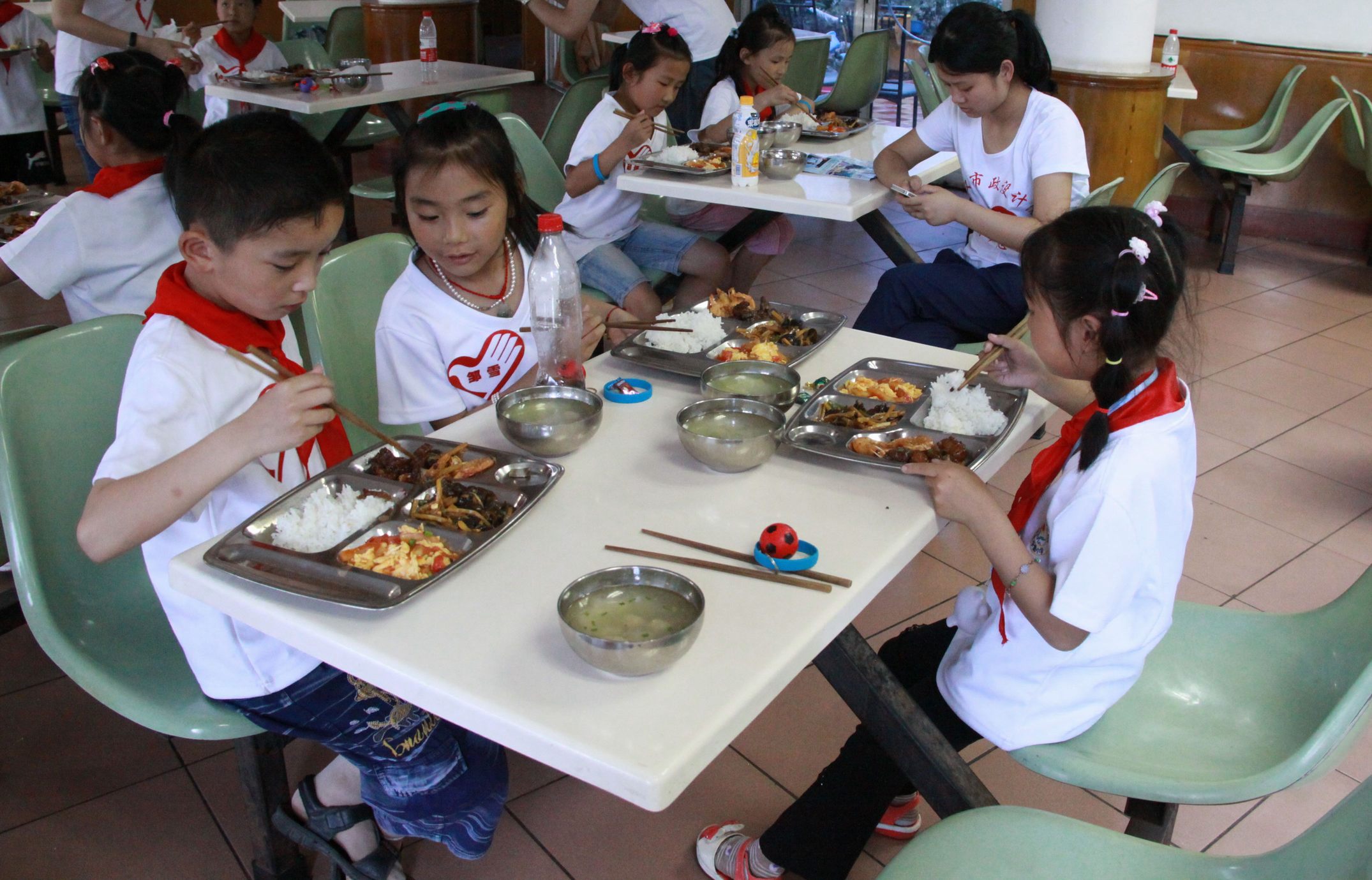 ??? 結(jié)束了一天的行程,志愿者與孩子們回到公司吃晚飯,孩子們有秩序的排隊(duì)領(lǐng)取晚餐,吃的干干凈凈。這時(shí),志愿者們端出了準(zhǔn)備好的蛋糕,為這群7-9歲的孩子們過一個(gè)集體生日,大家唱著生日歌,一起吹滅了蠟燭。志愿者們將蛋糕分發(fā)給每一個(gè)孩子,他們吃的津津有味。