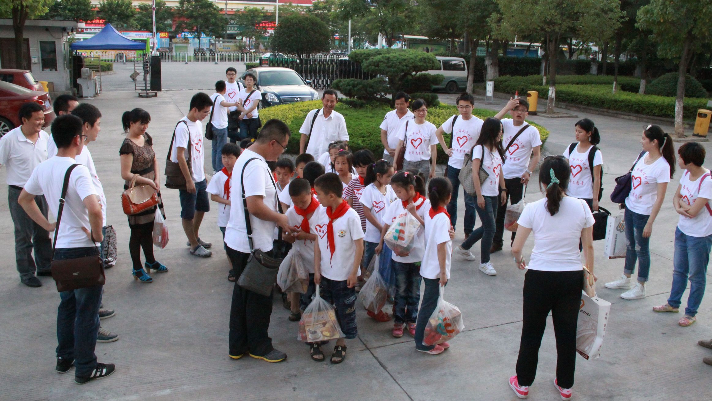 ??? 晚餐結(jié)束后,志愿者們與孩子們手拉手走出公司大門。志愿者隊(duì)長向李集小學(xué)領(lǐng)導(dǎo)贈(zèng)送了文體用品,隊(duì)員們也為孩子們送上早已準(zhǔn)備好的食品及小禮物,并送他們上車。告別的瞬間,隊(duì)員們向車上的孩子們揮手告別,目送車輛遠(yuǎn)去,車上的孩子們也揮動(dòng)著自己的小手,向公司志愿者們致意,為這次充實(shí)而難忘的活動(dòng)畫上了圓滿的句號。
