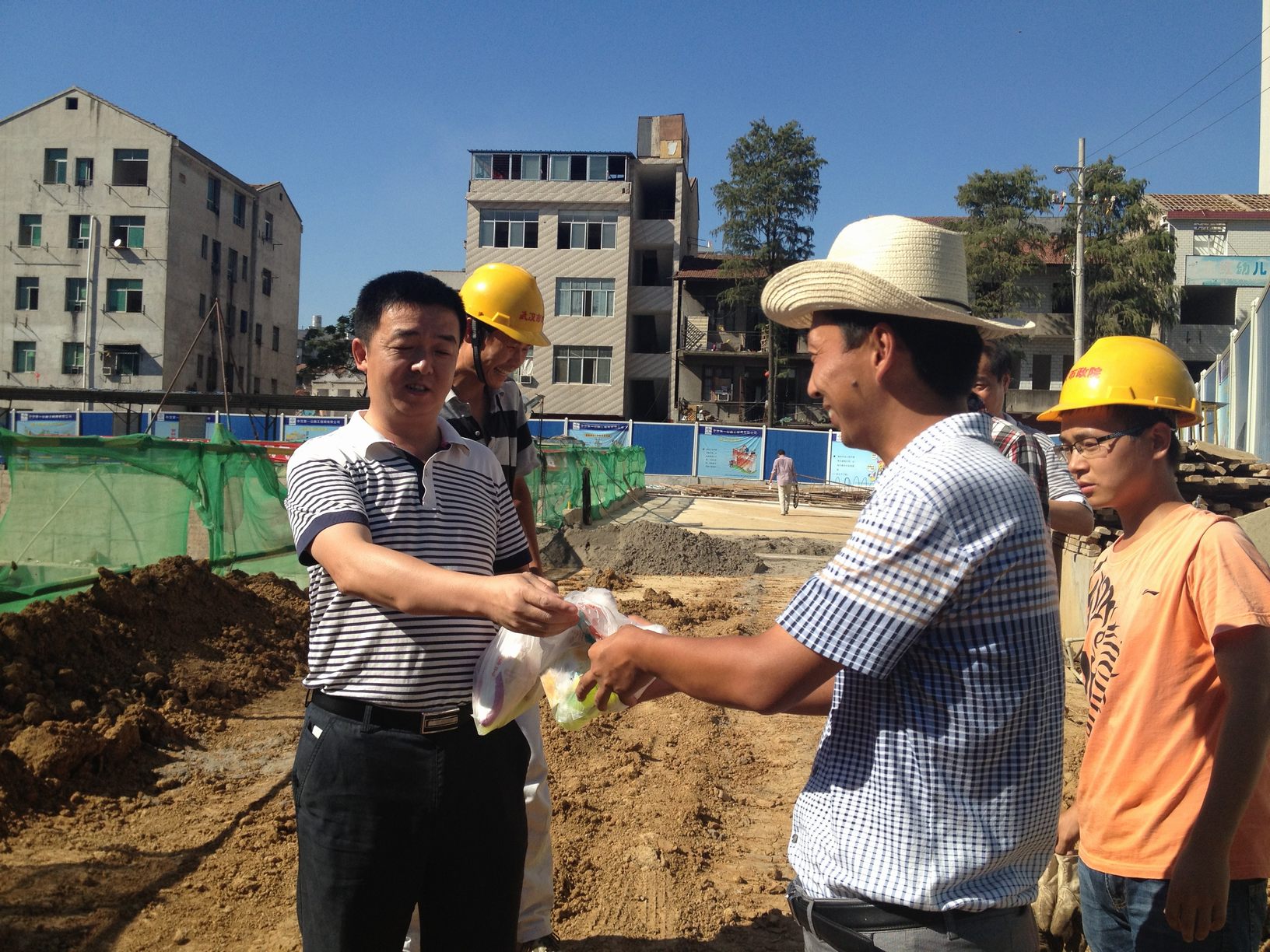 ??? 近段時(shí)間,武漢市出現(xiàn)了連續(xù)高溫天氣,但為了保障所承擔(dān)項(xiàng)目的按時(shí)推進(jìn),公司監(jiān)理、勘測(cè)、測(cè)試等外業(yè)人員仍然在烈日下堅(jiān)守工作崗位。8月16日,公司黨委書(shū)記蔡輝、副總經(jīng)理趙世杰、總經(jīng)理助理胡軍等一行在監(jiān)理公司、勘測(cè)設(shè)計(jì)院負(fù)責(zé)人的陪同下,對(duì)部分工地進(jìn)行了走訪慰問(wèn),為高溫下堅(jiān)持工作的員工送上一份清涼。