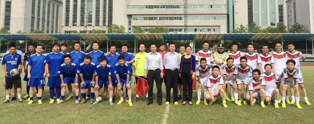 ??? 5月7日下午,位于北湖的漢口體育中心內(nèi)人聲鼎沸,活力四射,公司“慶五四”足球友誼賽在這里舉行。公司黨委書(shū)記蔡輝、副總經(jīng)理張偉及各分工會(huì)主席、部門(mén)負(fù)責(zé)人到現(xiàn)場(chǎng)觀看了比賽。