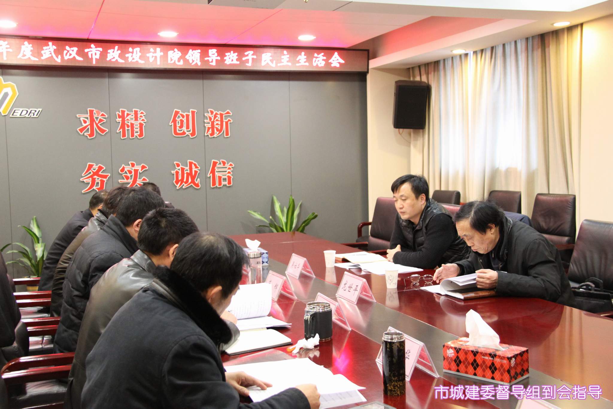??? 按照市城建委的安排和部署,2月5日下午,公司領(lǐng)導(dǎo)班子召開(kāi)2014年度民主生活會(huì),市城建委督導(dǎo)組組長(zhǎng)、總工程師龍世平和督導(dǎo)組成員吳社華出席并指導(dǎo)了會(huì)議,黨委書記蔡輝主持會(huì)議,并代表公司黨委作對(duì)照檢查并作總結(jié)講話,公司領(lǐng)導(dǎo)班子成員逐一作對(duì)照檢查,開(kāi)展批評(píng)與自我批評(píng)。
