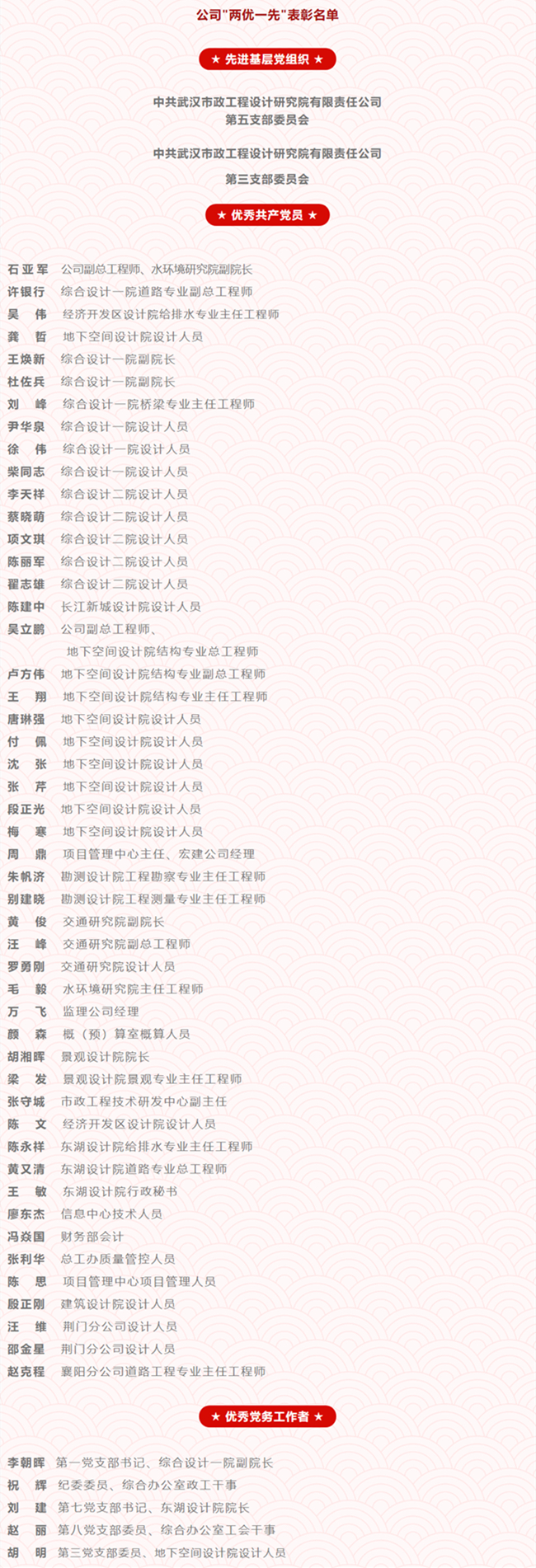 中共武漢市政工程設(shè)計研究院有限責(zé)任公司第五支部委員會榮獲市城投集團(tuán)公司“先進(jìn)基層黨組織”稱號。